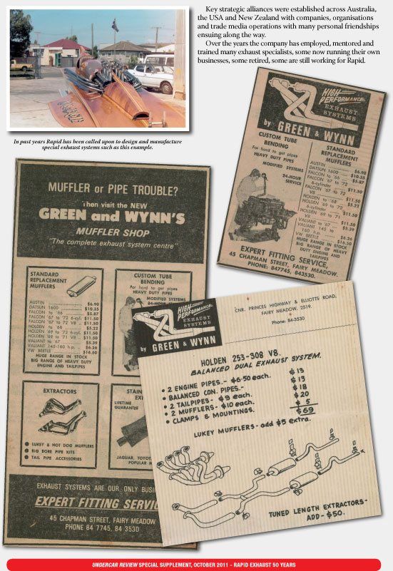 Rapid Exhaust Systems was established in 1963 by Les Green and Noel Wynn as an automotive repair business, specialising in exhaust systems. They opened one of the first full-on muffler shops in Australia in the early seventies and have since expanded the business to also include manufacturing and wholesale distribution.